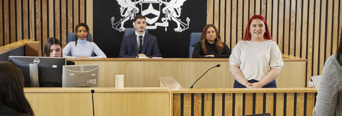• You will have access to the University’s modern moot courtroom, which enables you to practice your legal skills in a real-world environment.