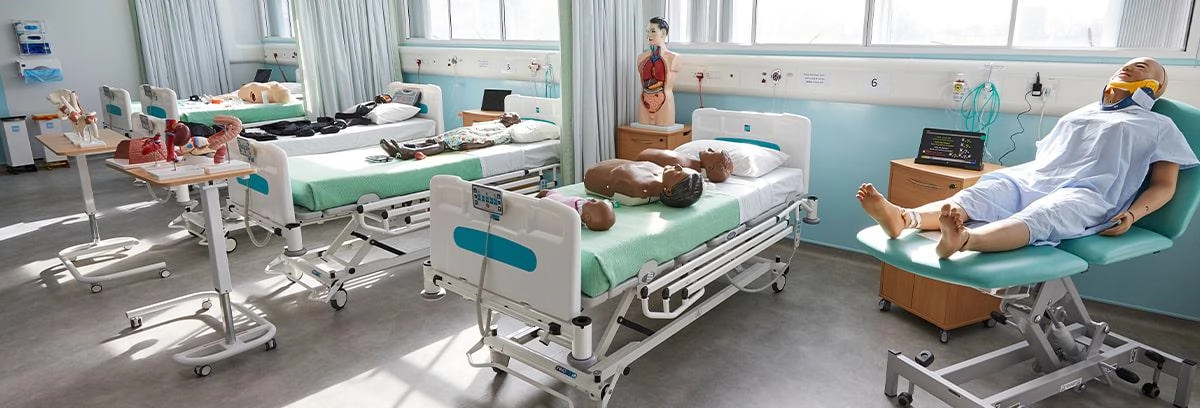 You’ll have access to a range of our specialist facilities, including a nursing simulation suite with a six bed ward, GP consulting room, nurse’s treatment room, waiting area/break out space, care home bedroom and working kitchen and bathroom. There is a wide range of clinical equipment including simulation manikins to facilitate various simulated scenarios.