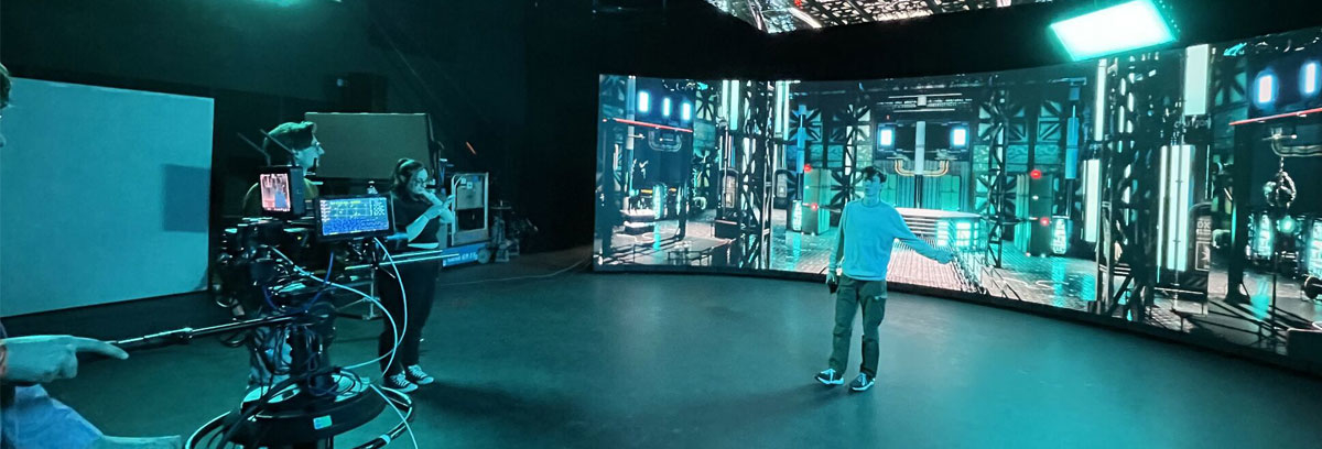 Explore, experiment and learn industry skills to become a trailblazer in virtual production (VP) and extended reality (XR) using our VP volume, XR green screen studio and Vicon mocap and body scanner.