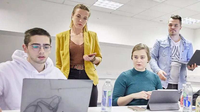 The programme actively engages with the local community and collaborates with small and medium-sized enterprises such as Think Engine, Red Funnel Ferry, and Southern Co-Op. Through these partnerships you'll have opportunities to work on community-focused projects and initiatives, applying your skills in real-world settings. The collaboration also includes mentorship programmes, guest lectures, and joint projects, providing valuable insights and support to help you develop your skills and knowledge. The integration of live briefs and work placements provides invaluable exposure to the business world, enhancing employability and readiness for the job market. The teaching team combines academic expertise with strong industry experience to deliver innovative, practice-led and student-centred learning that equips students with current, real-world skills and strong professional networks for successful careers.