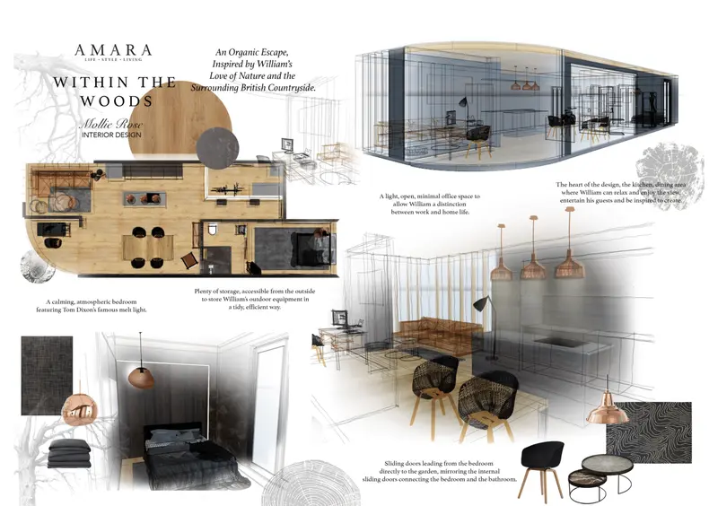 This module represents the culmination of your studies and the opportunity to undertake and evidence sustained research and development to inform a coherent, original and critically informed body of work in relation to interior design. This module will act as a platform on which you can exhibit your knowledge, skills, and intellectual maturity acquired during the course and help define your professional portfolio and identity.