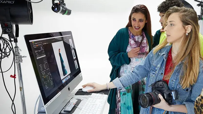 You’ll also have access to our digital reprographics lab, featuring commercial-standard and large-format printers, flatbed scanners, three Hasselblad drum scanners scanning up to 5x4 size and a colour-calibrated ProMac-based reprographic suite. Our recently rebuilt colour and black-and-white darkrooms are of the highest industry standards and students can also freely use our in-house colour film processing machine. Additionally, we have finishing and film processing rooms, a modern multimedia lab featuring 24 iMacs with Adobe Creative Suite and Final Cut Pro, plus large professional photographic studios and associated make-up and styling rooms.