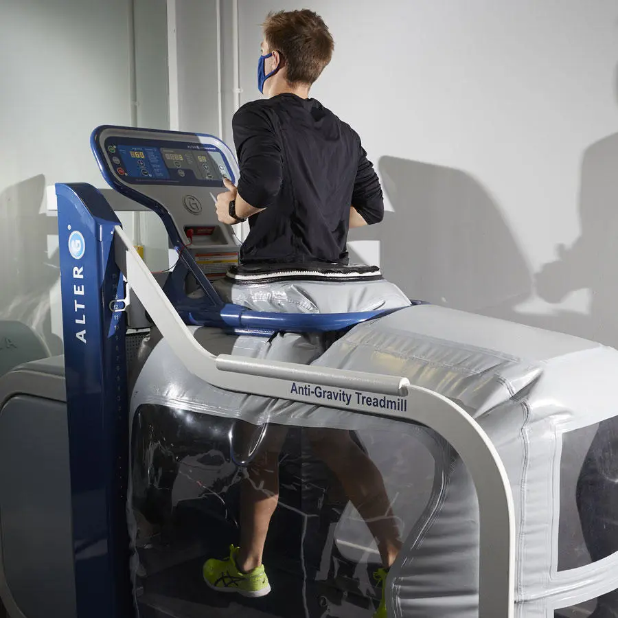 The anti-gravity treadmill is designed to help with sports injuries. It uses air pressure to reduce body weight to aid rehabilitation by reducing the impact on joins and muscles.