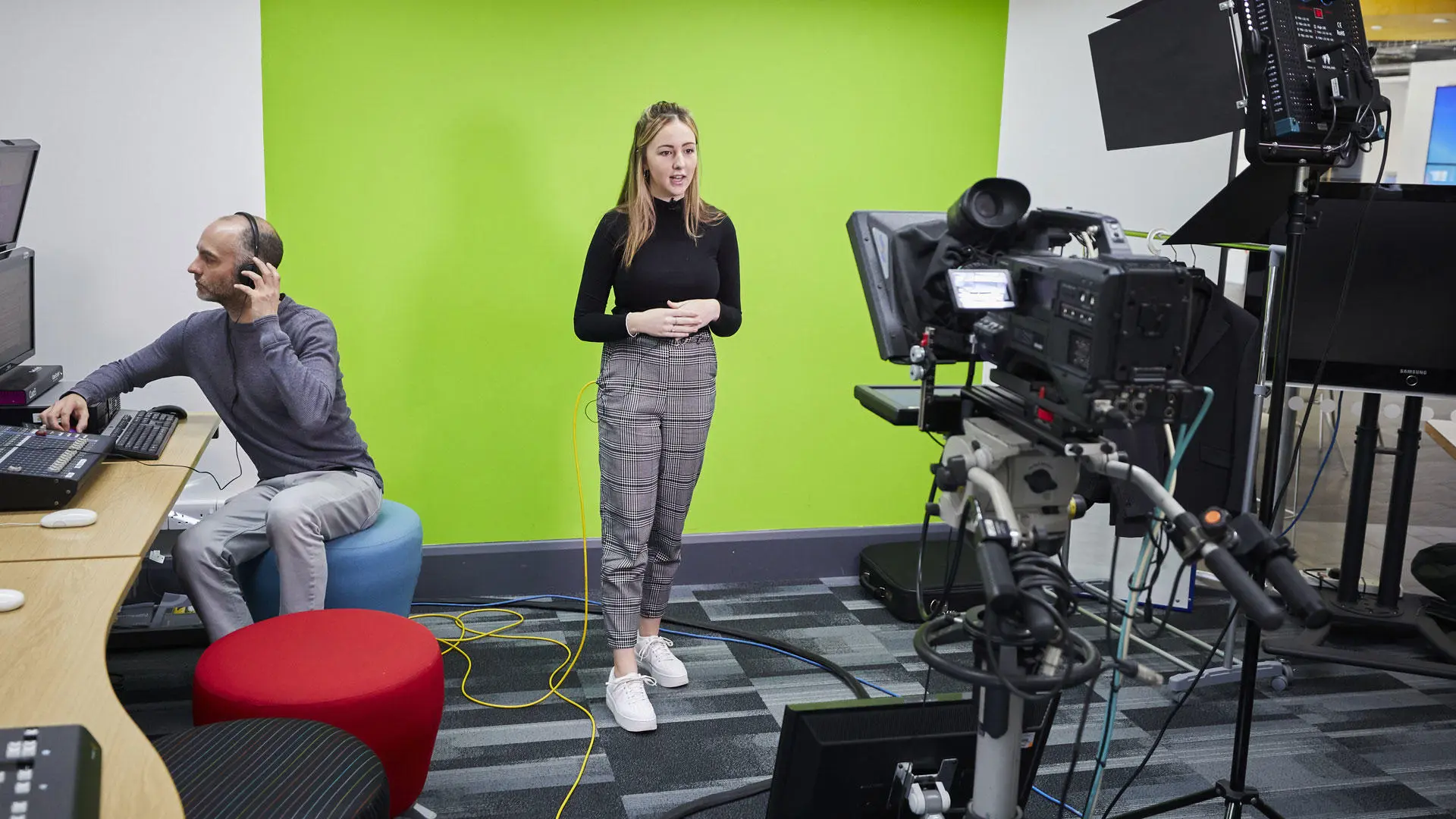 The dedicated on-location mini studio enables journalism students to deliver live news bulletins, and is linked to the main TV studios for larger projects and news events.