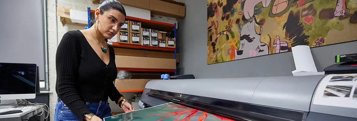 We can support students and staff to fulfil their specialist printing needs which may include fine art inkjet printing, super large format roll inkjet printing, double sided printing, print for zine and book works and use of specialist print media such as tracing paper, adhesive vinyl and clear film.