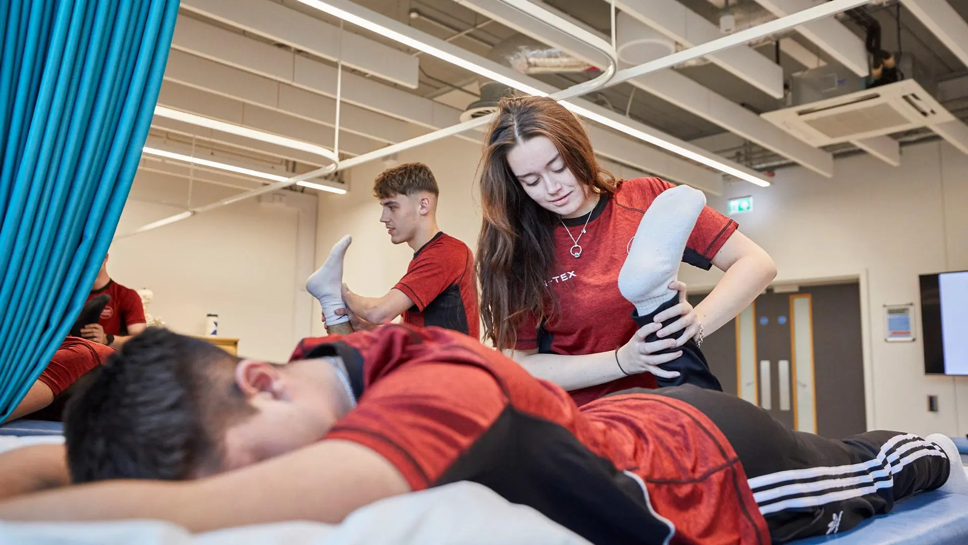 At Solent University, we have three purpose built modern sports therapy suites. Each suite is equipped with sports therapy couches and a clear floor space. This allows for plenty of demonstration and teaching room.Â